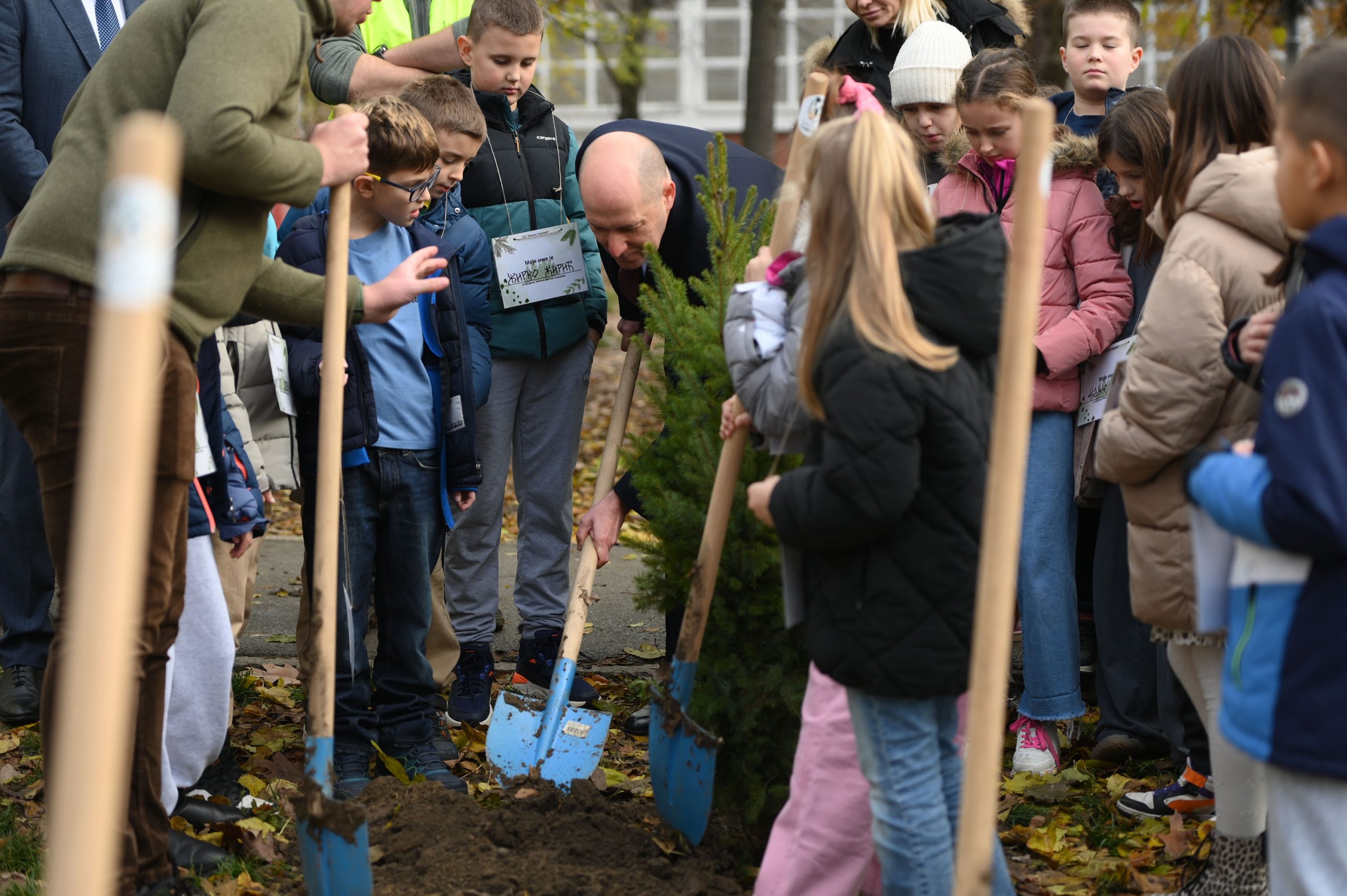 Active involvement of students in the process of planting Pančić's spruce trees in the school’s yard.