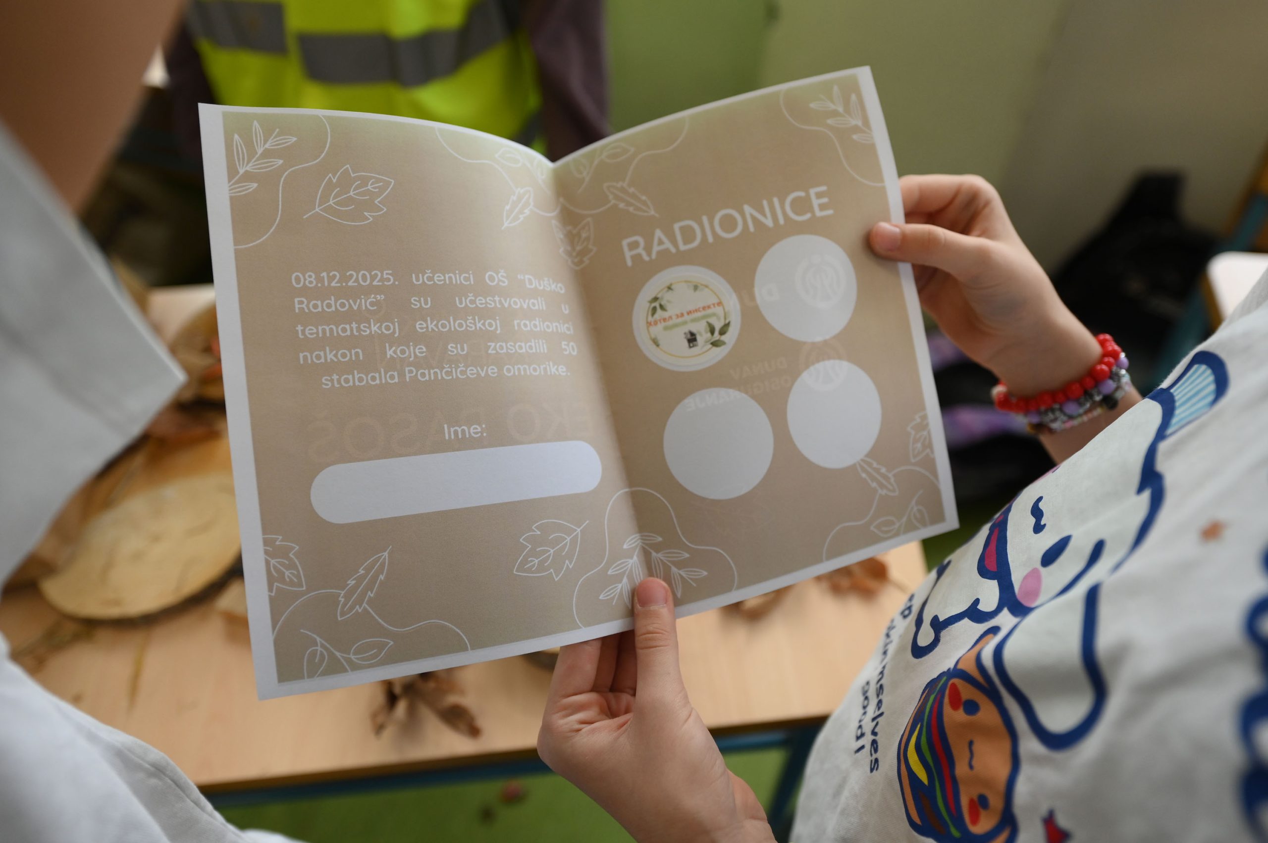 Aktivno uključivanje učenika u proces sadnje stabala Pančićeve omorike u oglednom dvorištu škole.